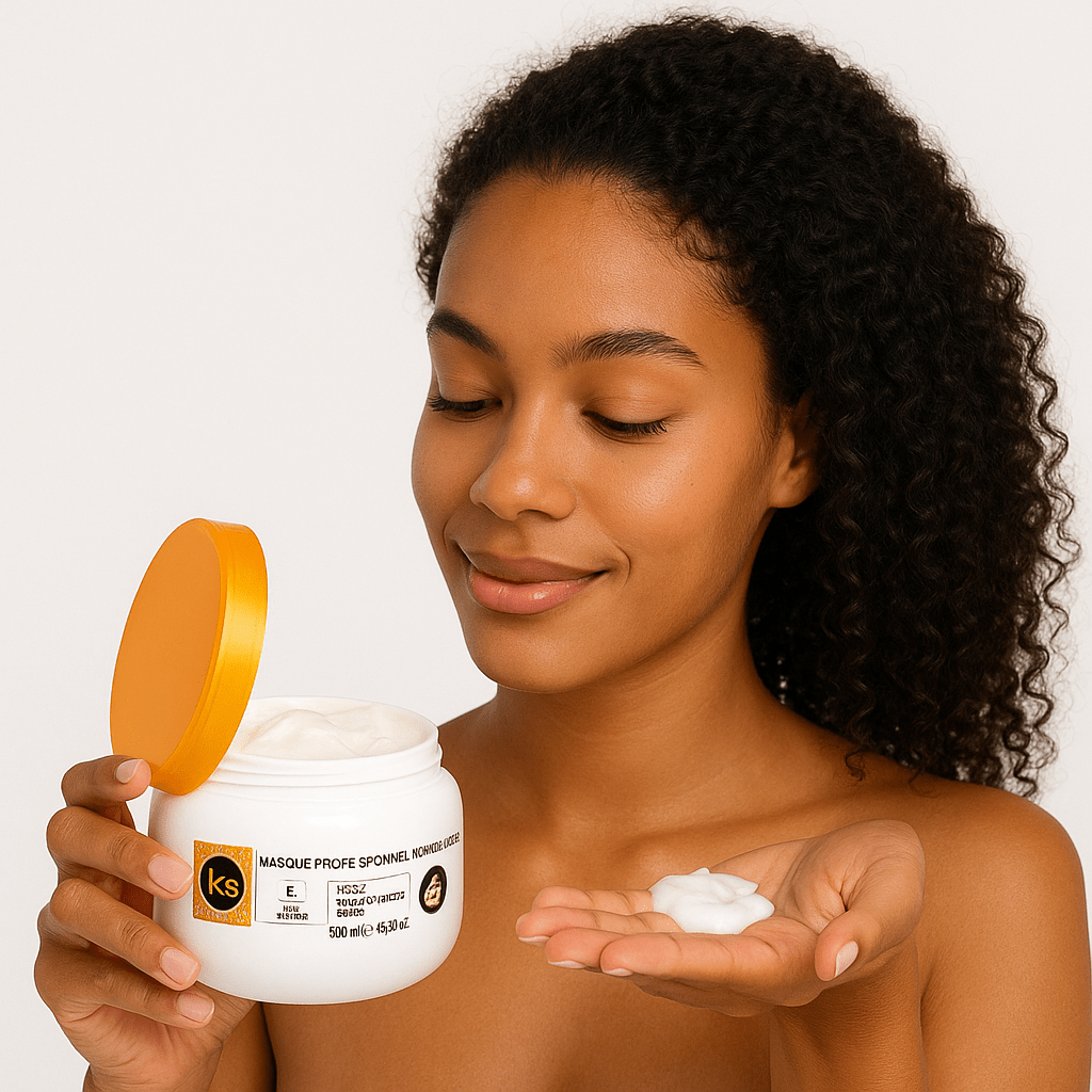 Étape 2 : Essorez les cheveux et appliquez généreusement le masque sur longueurs et pointes. Laissez poser 15-20 minutes. Rincez à l'eau tiède.