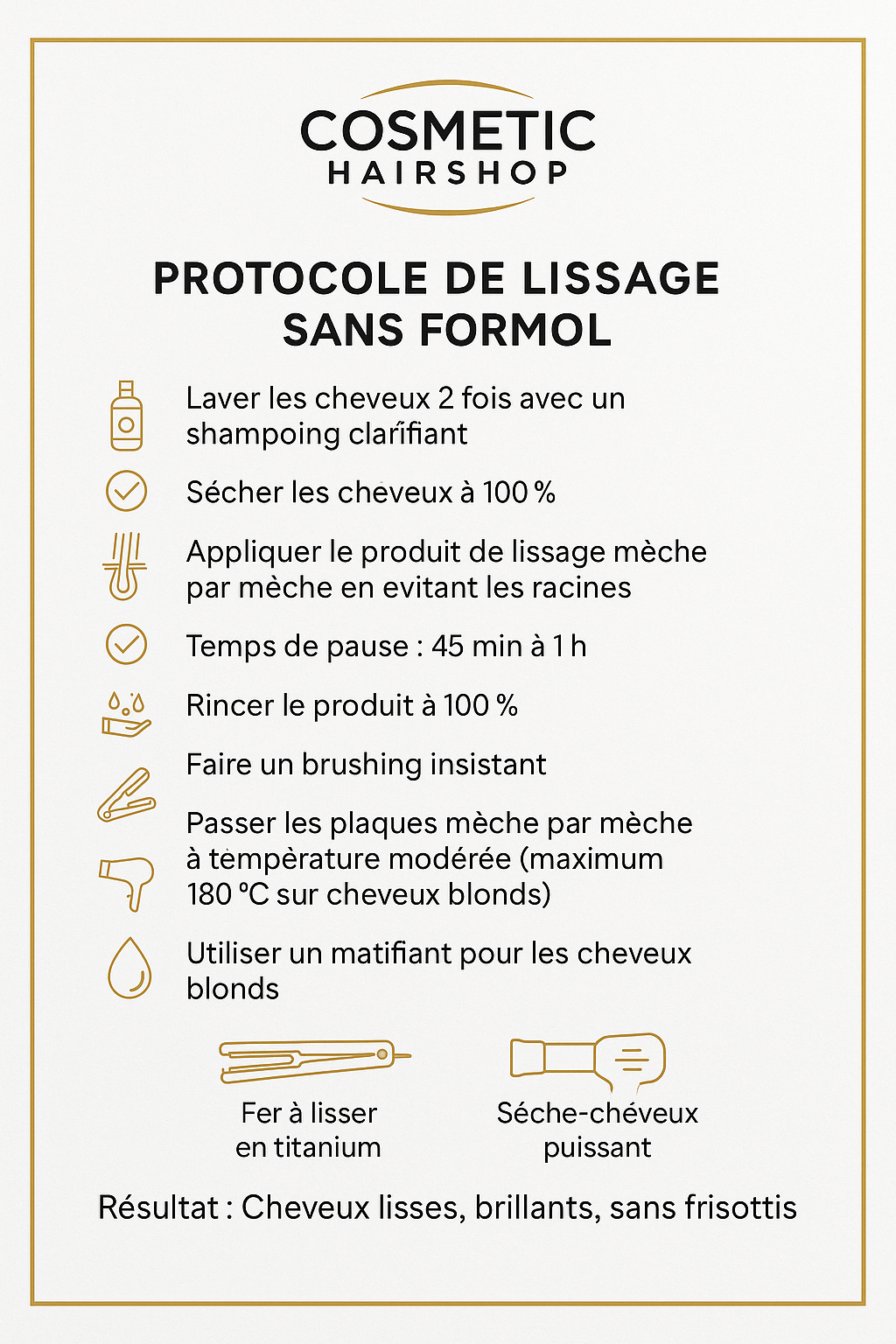 - Renforce la fibre capillaire et apporte une brillance miroir