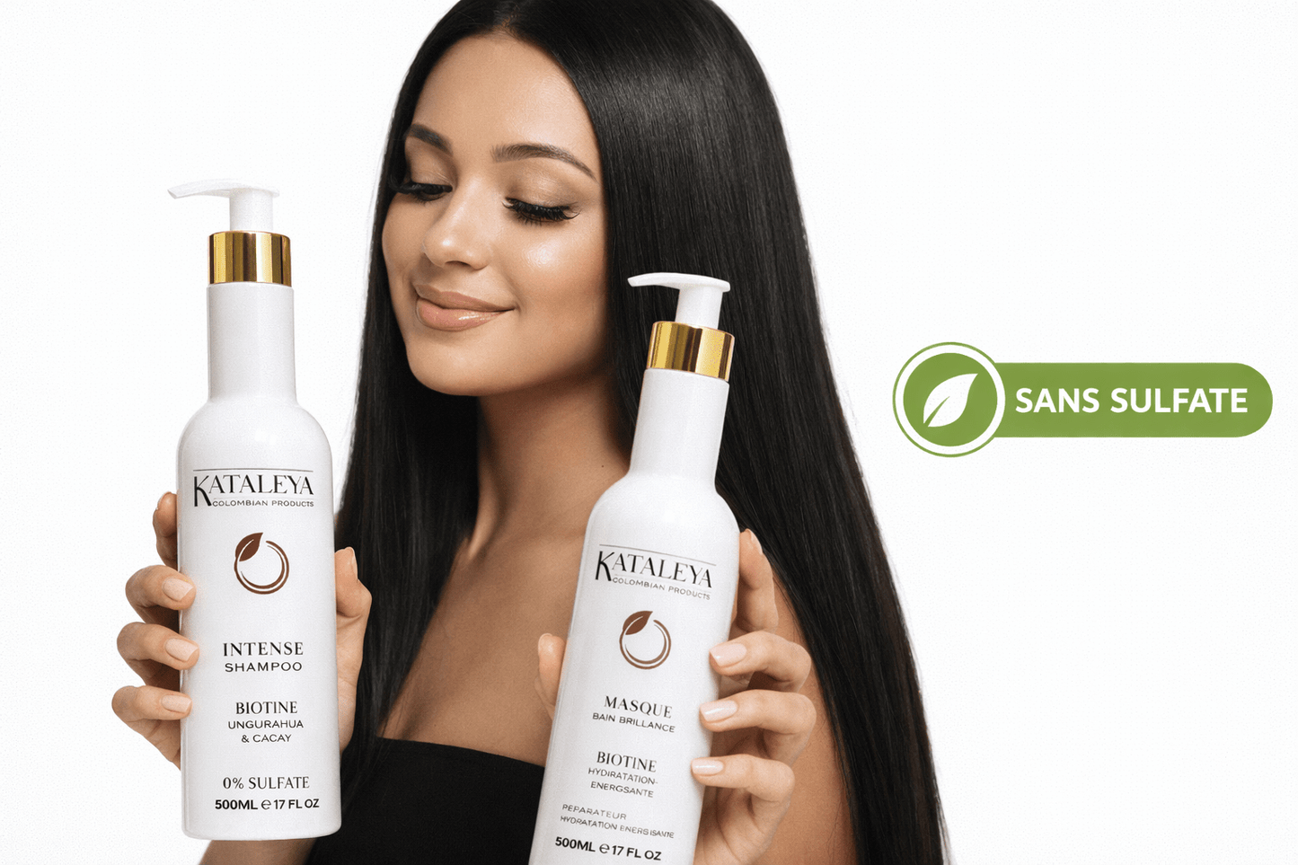 Découvrez la routine capillaire colombienne la plus complète, spécialement formulée pour renforcer, hydrater et lisser les cheveux dès la première utilisation. Le Duo KATALEYA à la Biotine 0% Sulfate combine un shampoing intense et un masque ultra-brillance pour offrir une transformation visible et durable.
