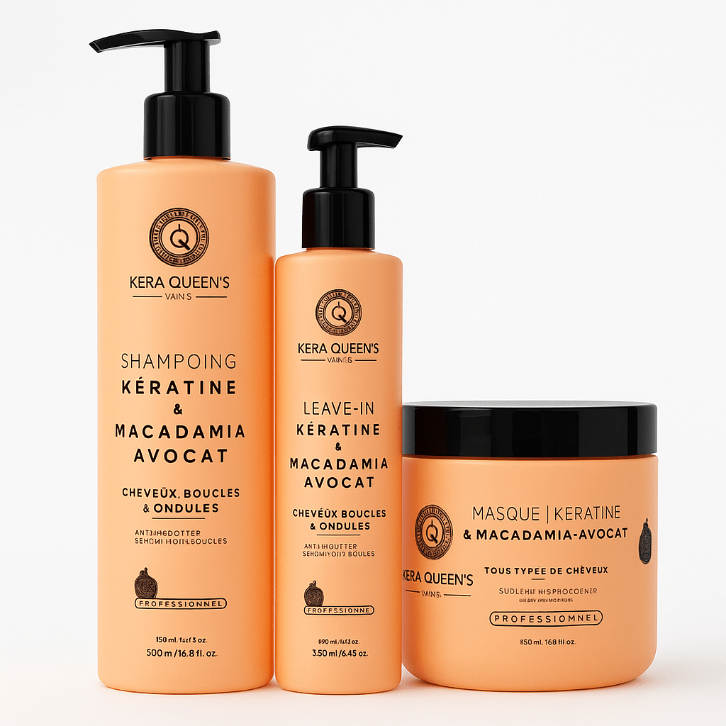 Kit Soin Kératine & Macadamia Avocat – Shampoing, Masque et Leave-In Professionnels pour Cheveux Bouclés & Ondulés